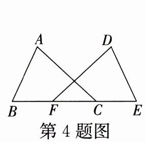 4. 如图所示的是工人师傅用同一种材料制成的金属框架,已知∠B = ∠E,AB = DE,BF = EC,其中△ABC的周长为24 cm,CF = 3 cm,则制成整个金属框架所需这种材料的总长度为(