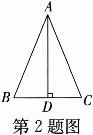 2. 如图所示,在△ABC中,AD ⊥ BC,D为BC的中点,给出以下结论:①△ABD ≌ △ACD;②AB = AC;③∠B = ∠C;④AD是△ABC的角平分线。其中正确的有(