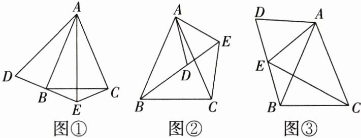 (1)如图①所示,点B在线段DE上,求证:∠DAE= ∠BAC;