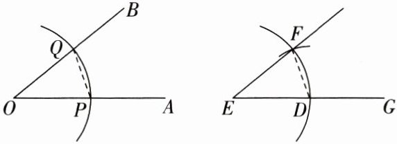 )如图所示,已知$\angle AOB$,求作:$\angle DEF$,使$\angle DEF= \angle AOB$。作法:如图所示。