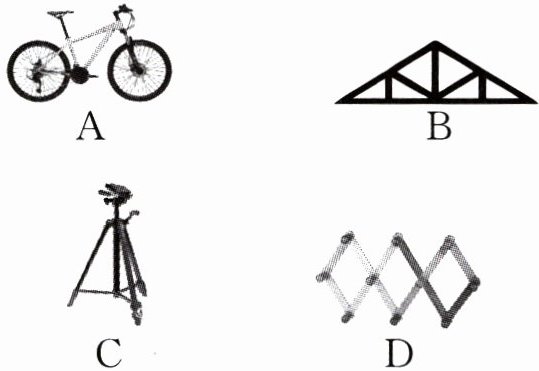 【例2】 同学们试着用数学的眼光观察世界,下列图形中,没有运用到三角形的稳定性的是 (