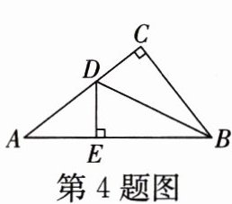 4. 如图所示,在△ABC 中,∠C = 90°,DE ⊥ AB 于点 E,CD = DE,∠CBD = 26°,则∠A 的度数为(