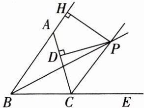5. 如图所示,在△ABC 中,∠ABC 的平分线与△ABC 的外角平分线交于点 P,PD ⊥ AC 于点 D,PH ⊥ BA,交 BA 的延长线于点 H.