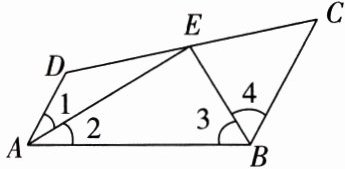 4. 如图所示, 已知 $ AD // BC $, $ \angle 1 = \angle 2 $, $ \angle 3 = \angle 4 $, 证明: $ AB = AD + BC $.