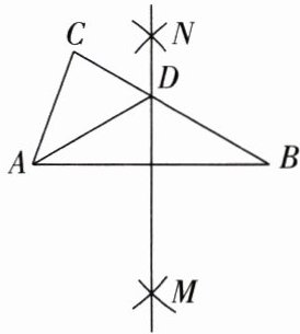 1. 如图所示,在 $ \triangle ABC $ 中,$ \angle C = 80^{\circ} $,$ \angle B = 30^{\circ} $,分别以点 $ A $ 和点 $ B $ 为圆心,大于 $ \frac{1}{2}AB $ 的长为半径画弧,两弧相交于点 $ M $,$ N $,作直线 $ MN $ 交 $ BC $ 于点 $ D $,连接 $ AD $,则 $ \angle CAD $ 的度数为(