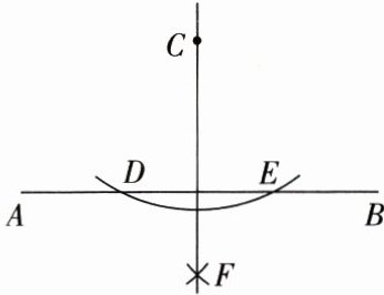 作法:如图所示.(1)以点 $ C $ 为____,适当长为____作弧,交 $ AB $ 于点 $ D $ 和 $ E $。