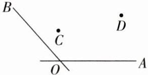 7. 如图所示,两条公路 $ OA $ 与 $ OB $ 相交于点 $ O $,在 $ \angle AOB $ 的内部有两个小区 $ C $ 与 $ D $,现要在 $ \angle AOB $ 的内部修建一个市场 $ P $,使市场 $ P $ 到两条公路 $ OA $,$ OB $ 的距离相等,且到两个小区 $ C $,$ D $ 的距离相等。