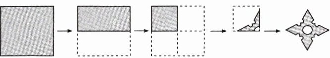 1. (传统文化)剪纸是中国的民间艺术,剪纸的方法很多,如图所示是一种剪纸方法的图示(先将纸折叠,然后剪,再展开,即得到图案):