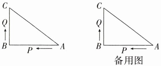 $\triangle PQB$中,$\angle B = 90°$,要使$\triangle PQB$为等腰三角形,需两直角边相等,即$BP = BQ$。