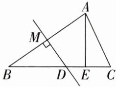 5. 如图所示,已知在△ABC中,AB的垂直平分线DM交BC于点D,垂足为M,点E为CD的中点,∠CAE= 25°,∠ACB= 65°。求证:BD= AC。