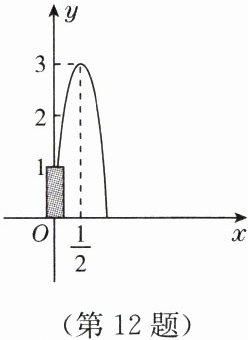 12. 某广场中心有高低不同的各种喷泉,其中一支高度为 $ 1m $ 的喷水管喷出的抛物线水柱最大高度为 $ 3m $,此时距喷水管的水平距离为 $ \frac{1}{2}m $,求在如图所示的平面直角坐标系中抛物线水柱的函数解析式(不要求写出自变量的取值范围)。