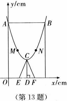 (2)求抛物线最低点 $ C $ 到杯底 $ EF $ 的竖直高度 $ CD $;
