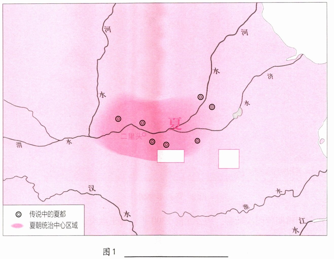 (4) 在图 1 中用红笔将夏朝统治的中心区域圈画出来;对照《中国行政区划图》,判断其中心区域主要在今____、____一带。