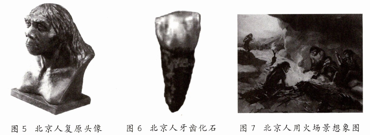 (3) 观察图7,想一想:北京人使用火对人类演化有什么作用?