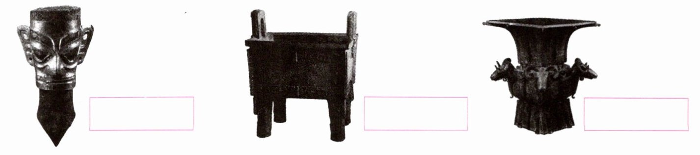 (1) 观察图 1,在下面图片旁的红框内填出相关文物的出土地点。
