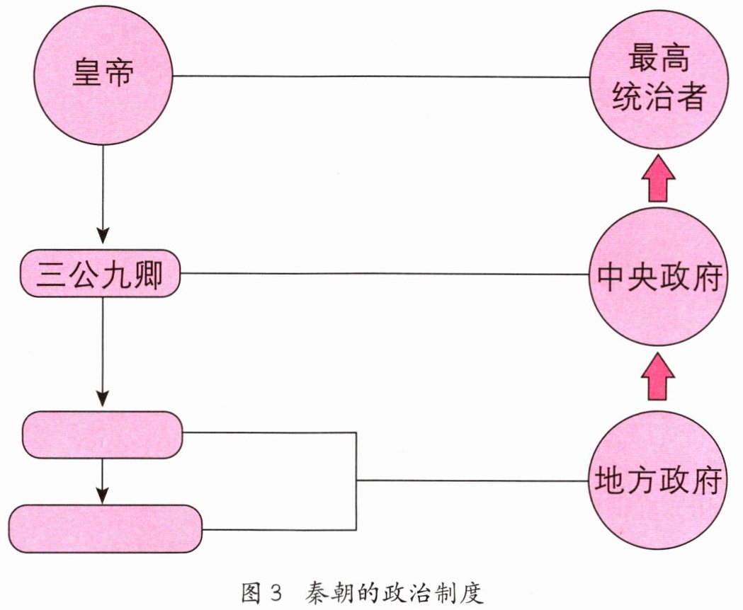 (1)自上而下分别为:郡守 县令(2)皇帝总揽全国的一切军政大权。皇帝之下设有中央政权机构,由丞相、太尉、御史大夫统领,分别掌管行政、军事和监察事务,最后的决断权由皇帝掌控。地方上实行由中央直接管辖的郡县制。