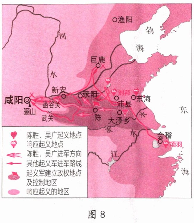 (3) 图8中出现的一位历史人物曾振臂一呼,喊出“王侯将相宁有种乎!”的口号。你如何理解这句话?