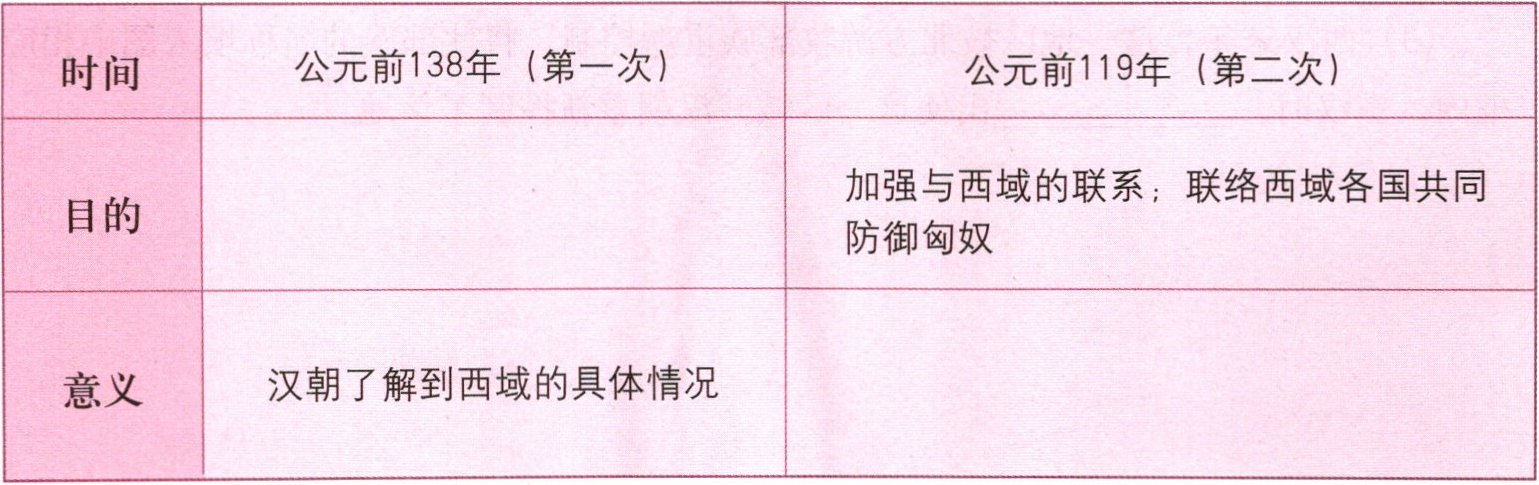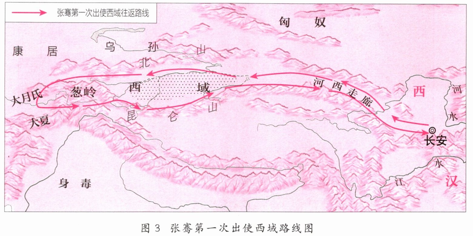 (3) 结合所学知识,完成图4表格中关于张骞两次出使西域的内容。