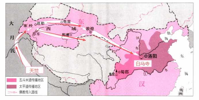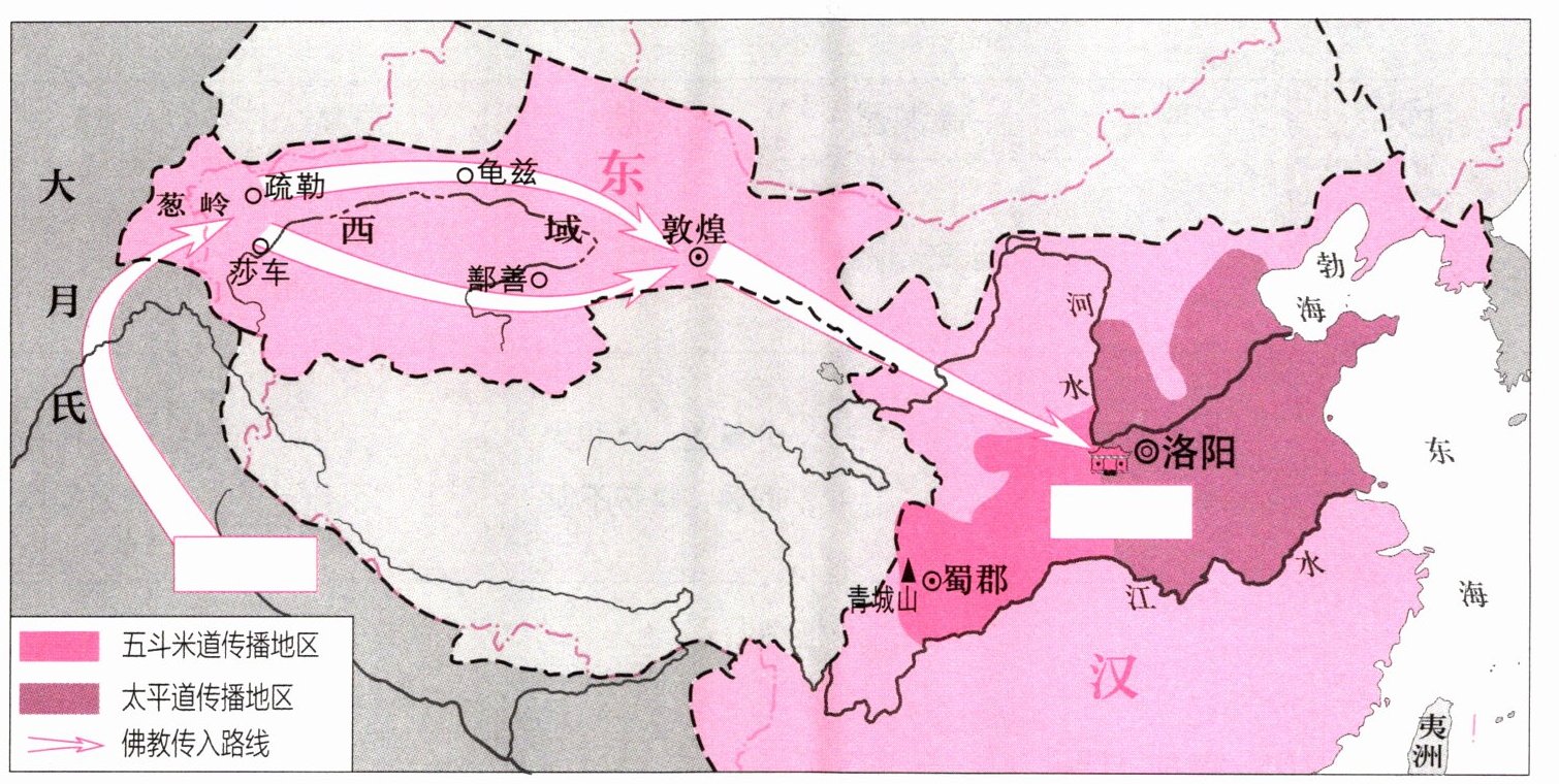 (3) 根据图2所示,五斗米道主要传播于______、______地区;结合所学知识,太平道的创立者是______。