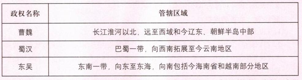 (4) 根据图3,描述魏、蜀、吴三国的管辖区域,填入下表: