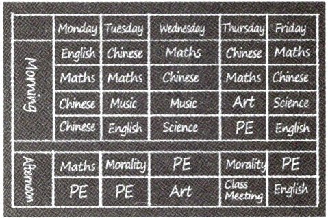 ) 2. What classes do we have on Wednesday morning?A. We have maths, computer, art and English.