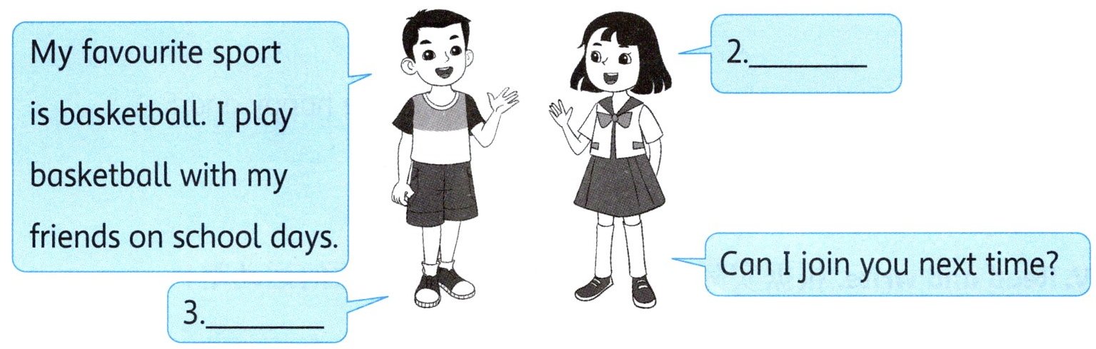 Ⅲ. Read and choose. 读一读,补全对话,将句子的序号填入对话框内。