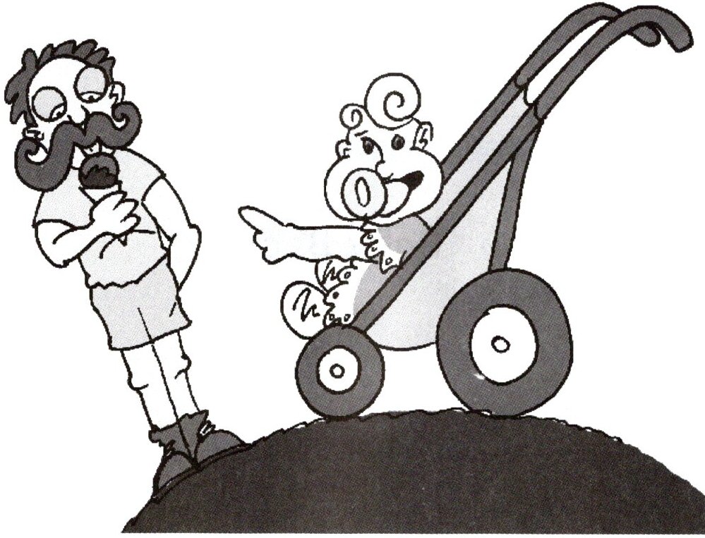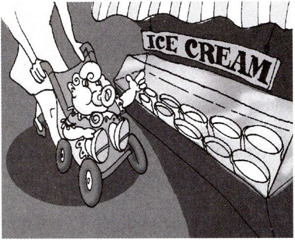 I see a man. He has some ice cream. I point. "Ice cream! Ice cream!" I say.