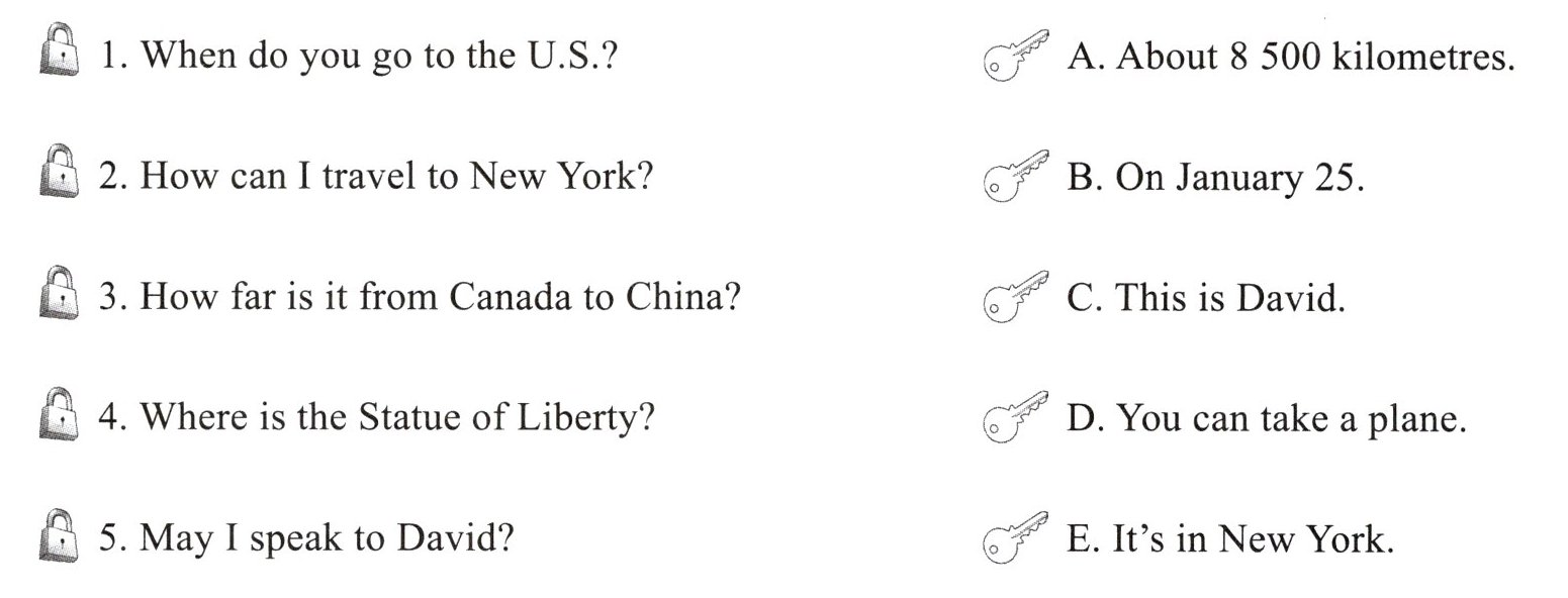 Ⅳ. Read and match. 读一读,把问题和答案连线。