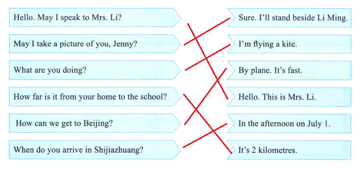 Ⅴ. Match the questions with the answers. 将问句和对应的答语连线。