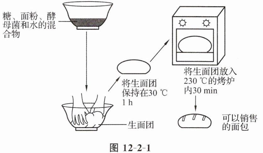 5. (跨学科实践)酵母菌经常被用来制作面包,图12-2-1表示面包的制作过程(酵母菌在有氧的条件下,分解葡萄糖,产生二氧化碳和水;在缺氧的条件下,分解葡萄糖,产生酒精和二氧化碳)。