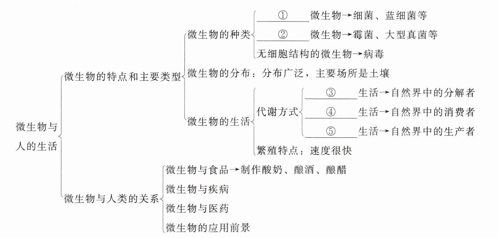 提示:①单细胞 ②多细胞 ③腐生 ④寄生 ⑤自养