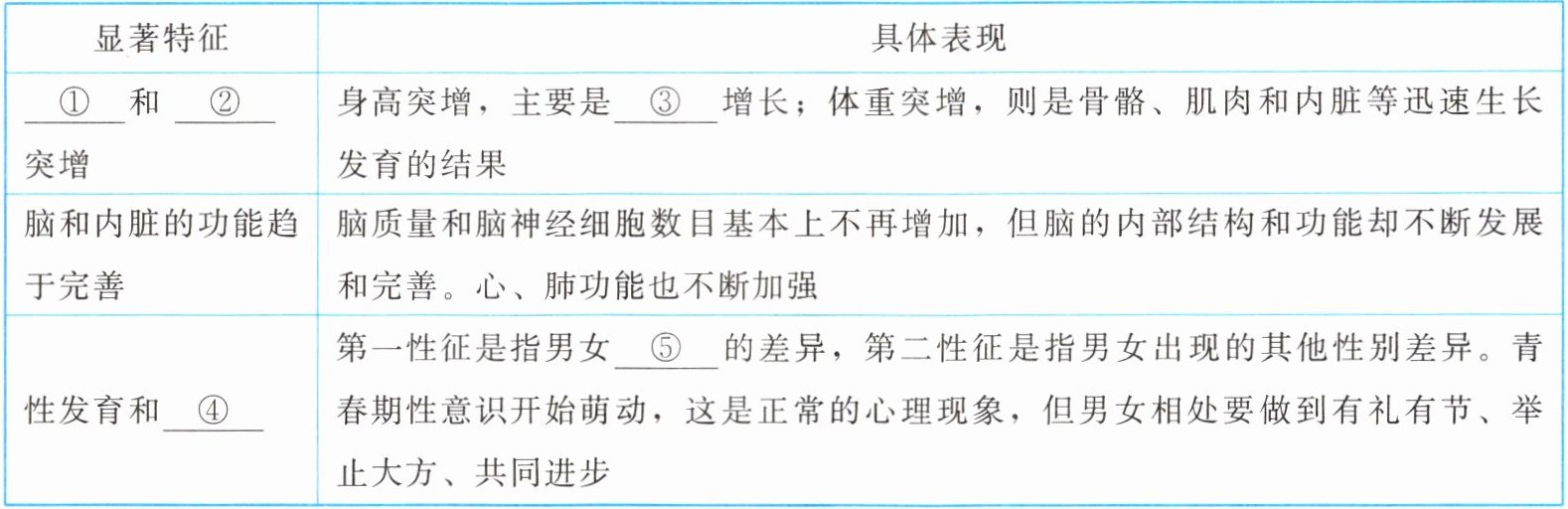 2. 月经和遗精的出现是⑥性成熟的标志,标志着女孩和男孩具有了生育的能力。
