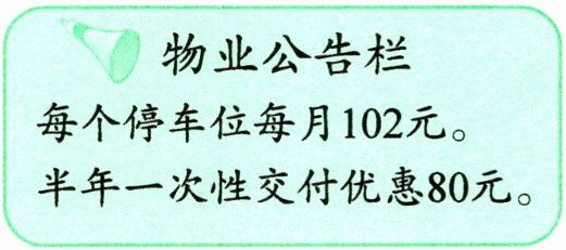 6. 阳光小区出租地面停车位。一位业主一次性交了半年(6 个月)的车位停车费,这位业主这次交了多少元?