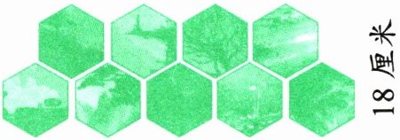 7. 学校陈列室的背景墙要安装 9 幅大小相同的风景画(如下图),画框每条边的长度相同,都是 18 厘米。用 10 米长的木条制作这些画框,够吗?(接头处不计)