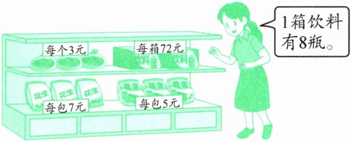 (1) 饮料每箱72元,1箱饮料有8瓶,则每瓶饮料的价格为72 ÷ 8 = 9 元。