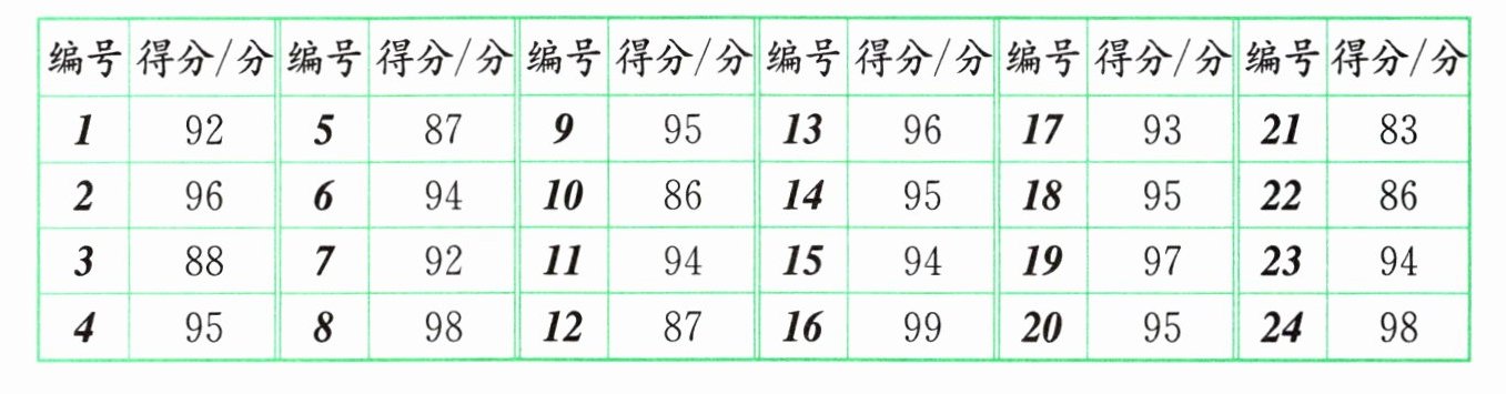 2. 电视台举办一场歌手大奖赛。参加比赛的 24 名选手得分如下: