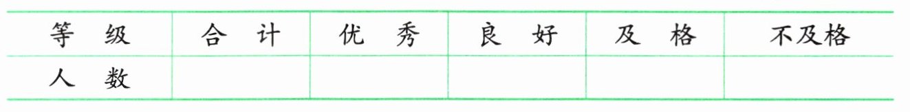 优秀人数:将统计表中优秀栏男生和女生的人数相加,假设统计表中优秀的男生有$a$人,优秀的女生有$b$人,那么优秀人数为$a + b$人。