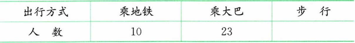 (2)小琪对全班同学最喜欢的出行方式调查,将结果整理成下表,请把表格填写完整。