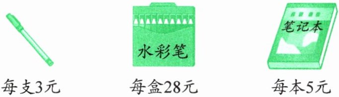 (2) 先买 1 盒水彩笔,剩下的钱可以买多少本笔记本?还剩几元?