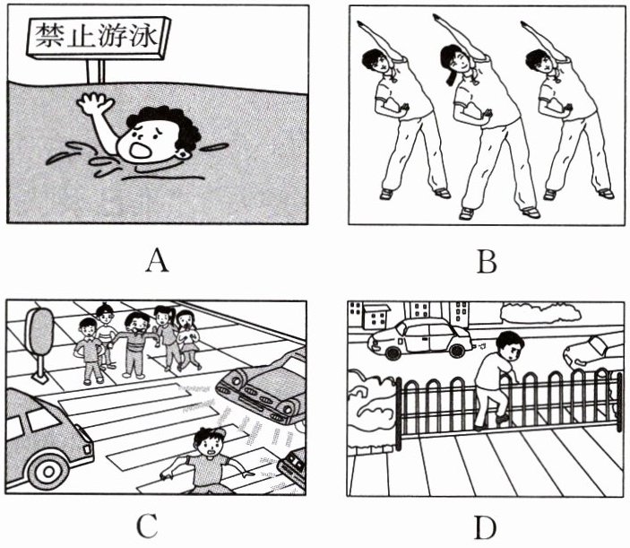 7. 某中学七年级(1)班开展以“敬畏生命,从我做起”为主题的班会,并收集了如下漫画。这些漫画中最适合这一主题的是( )