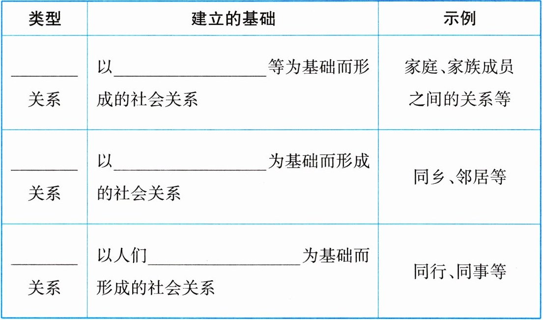 |____关系|以____为基础而形成的社会关系|同乡、邻居等|