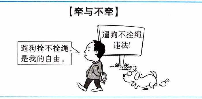 (1)结合所学知识,对情境一中遛狗者的言行进行评析。