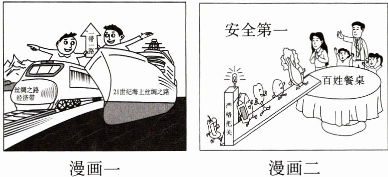 (1)漫画一体现了经济领域的国家利益,漫画二体现了社会领域的国家利益。