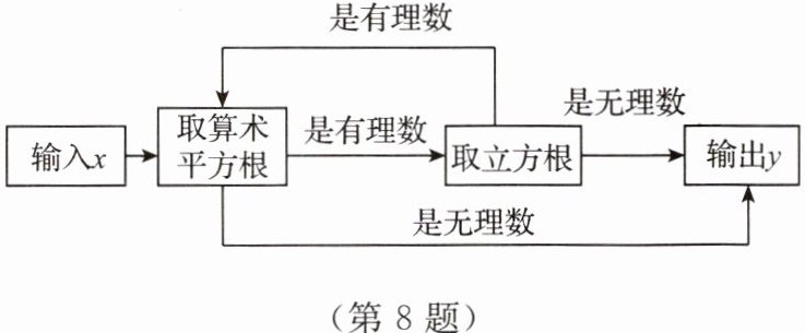 8. 小明是一个电脑爱好者,他设计了一个程序,如图,当输入的$x的值是64$时,输出的$y$的值是