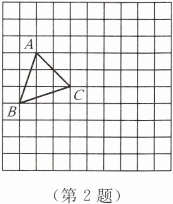 2. 如图,在边长为$1的小正方形组成的10×10$网格中(我们把组成网格的小正方形的顶点称为格点),$\triangle ABC$的三个顶点均在网格的格点上。