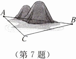 7. 如图,$A地和B$地之间有一座山,从$A地到B地需要绕行C$地。在$\triangle ABC$中,$\angle C = 90^{\circ}$,$AC = 300\ m$,$BC = 400\ m$,若打通穿山隧道,建成$A$,$B$两地的高铁,则$AB = $