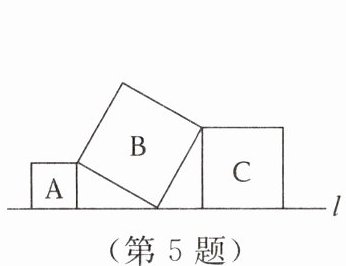 5. 如图,直线$l上有三个正方形A$,$B$,$C$,若正方形$A$,$C的面积分别为5和11$,则正方形$B$的面积为(
