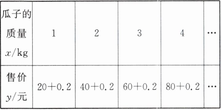 |瓜子的质量 $x/kg$|1|2|3|4|…|