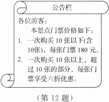 12. 【数学应用】一旅游团来到某旅游景点,看到售票处旁边的公告栏如下图所示,请根据公告栏的内容,回答下列问题: