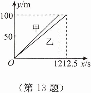 13. 如图所示的是甲、乙两人在一次赛跑中路程 $ y(m) $ 与时间 $ x(s) $ 之间的关系,看图回答下列问题: